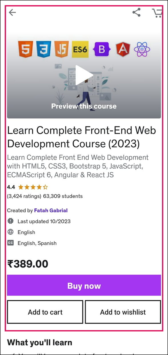 Although Error messages are clear and well structured, Udemy has paid less attention on maintaining design standards. Also on mobile view subtitles blocks the video viewport making it uneasy to get along for students unfamiliar with the default language. From giving too much information upfront to inconsistency in heading, sub-heading and paragraph.