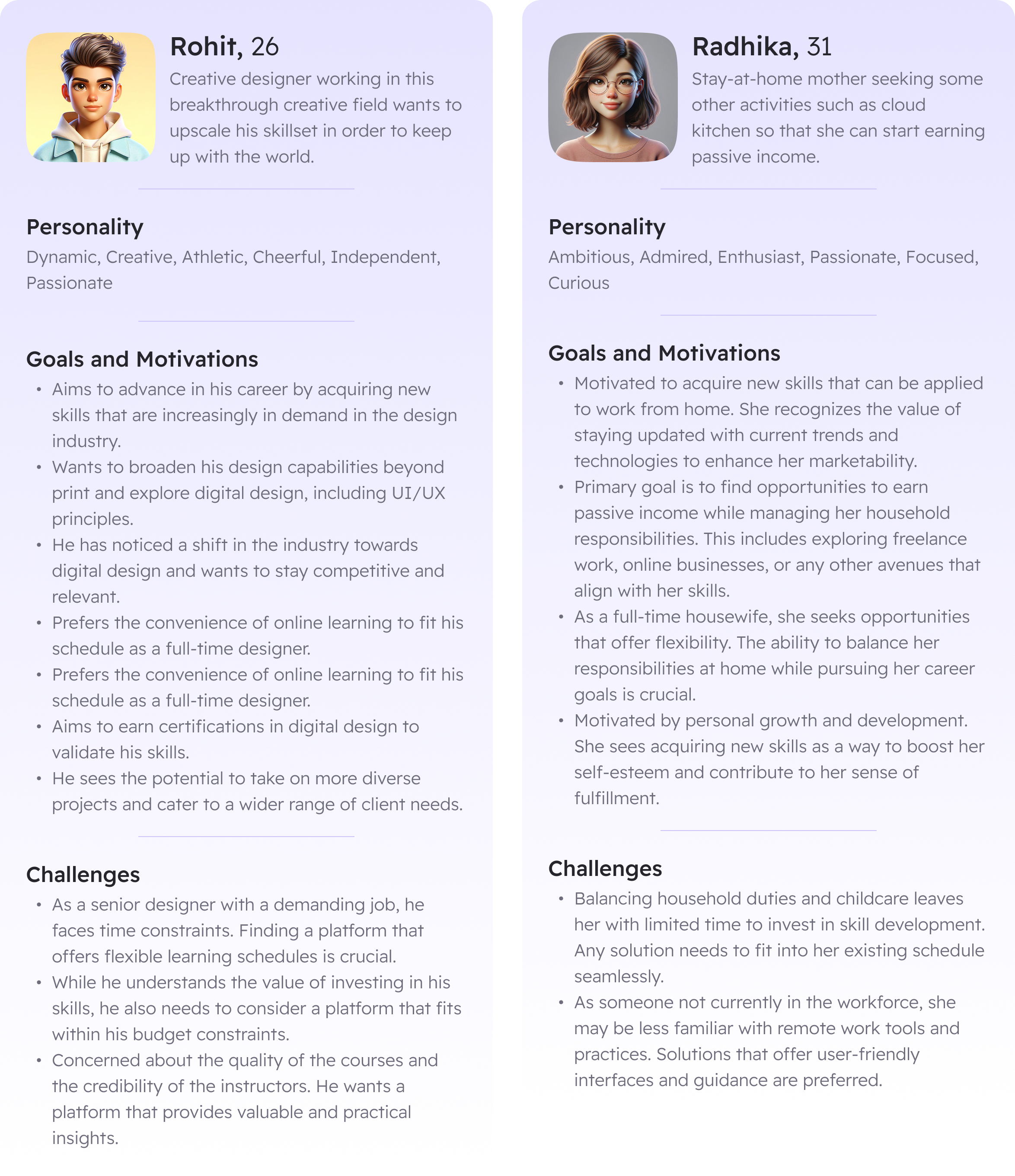 Going through both of the persona’s, following is the insight which could be gathered: