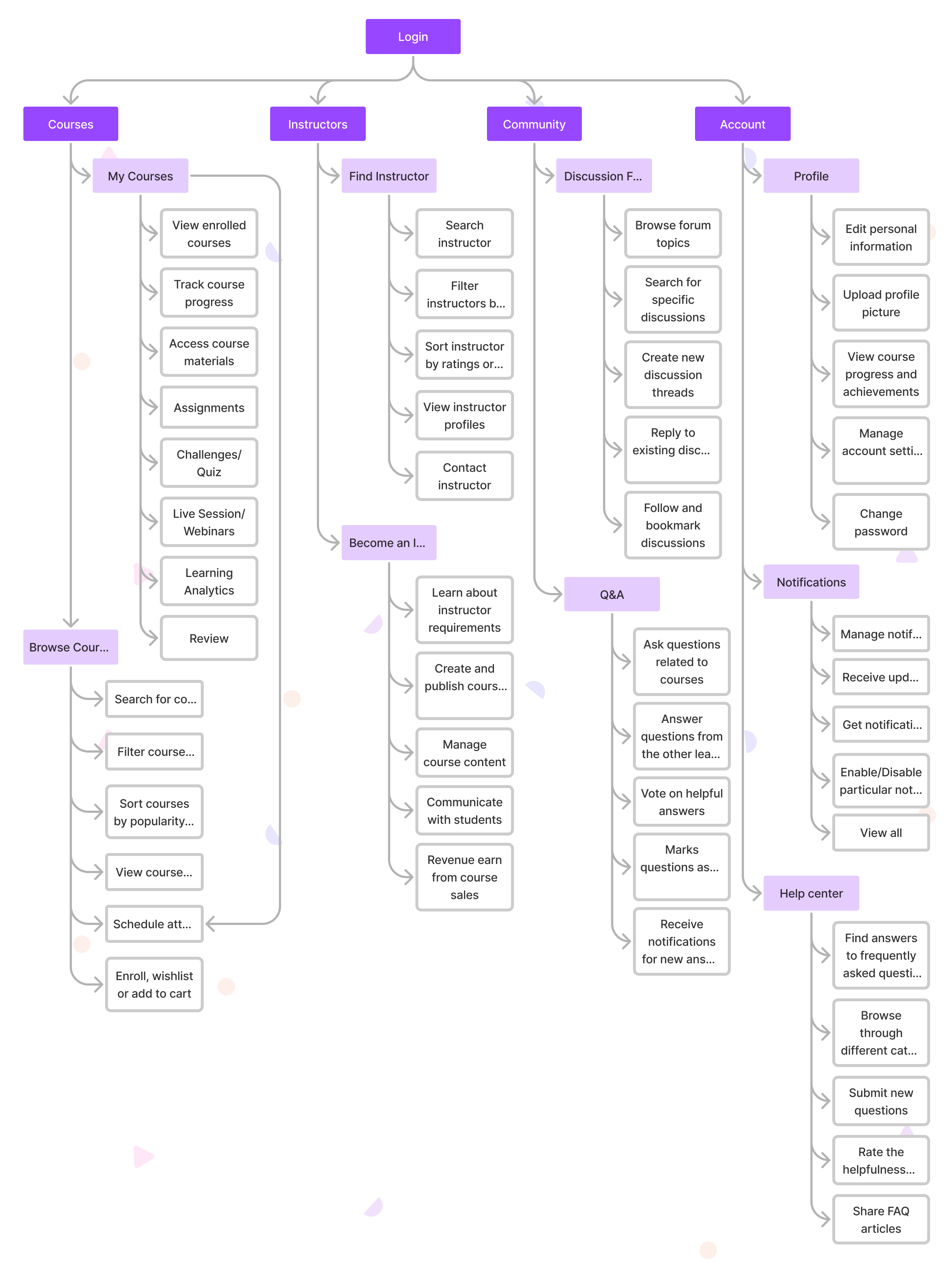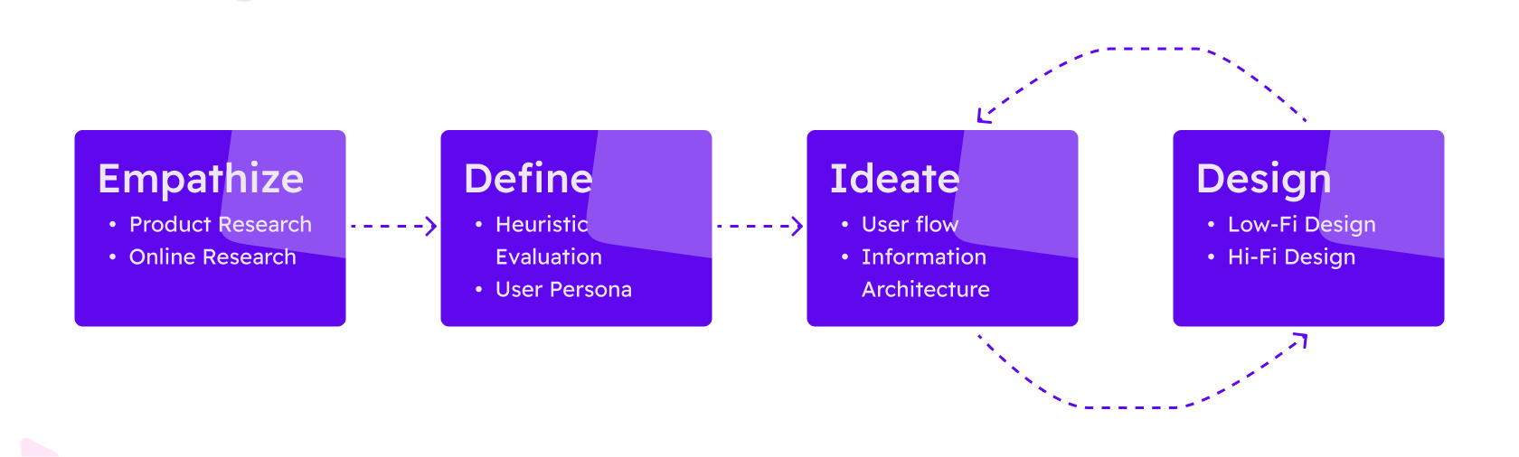 After dividing two user flows, primary and less prominent, I analyzed that the first page on which user lands on is feature page which look very similar to a webpage. If a user wants to purchase or enroll into any course, the user has either scroll down a lot or search for it which is really diverting the users’ cognitive focus.